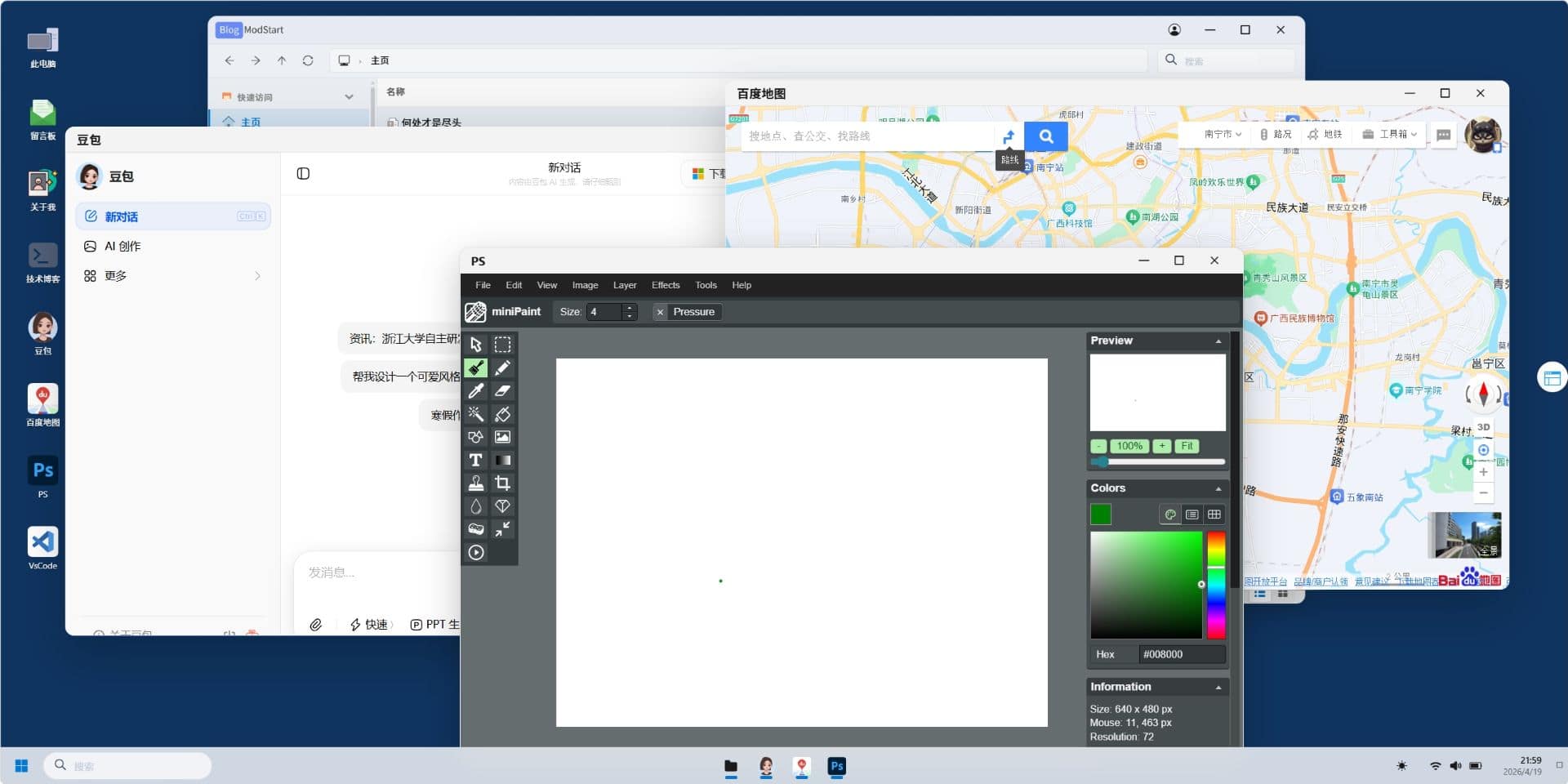 双击桌面图标可在当前页面弹出图标应用窗口,支持打开多窗口