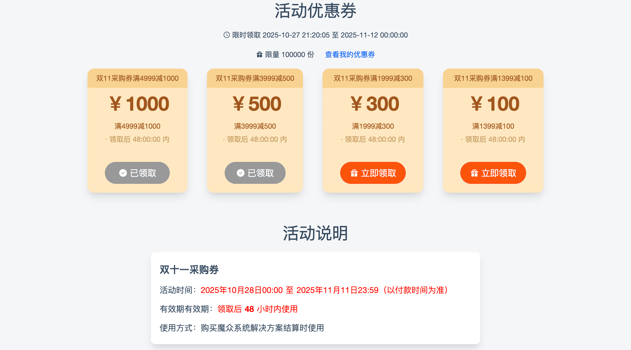 提供发放、抢购优惠券的活动页面